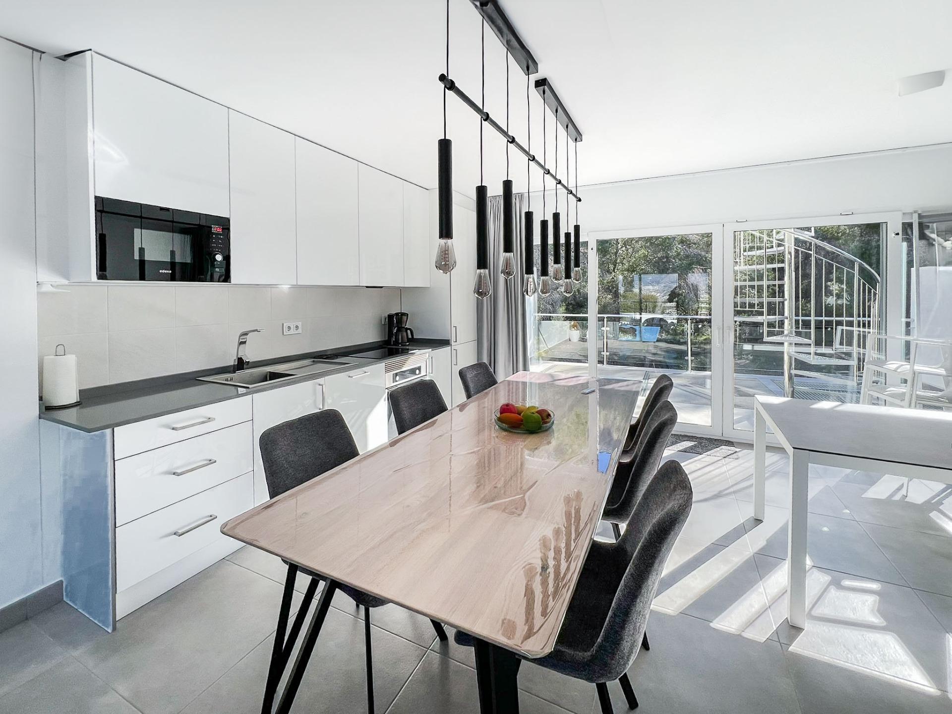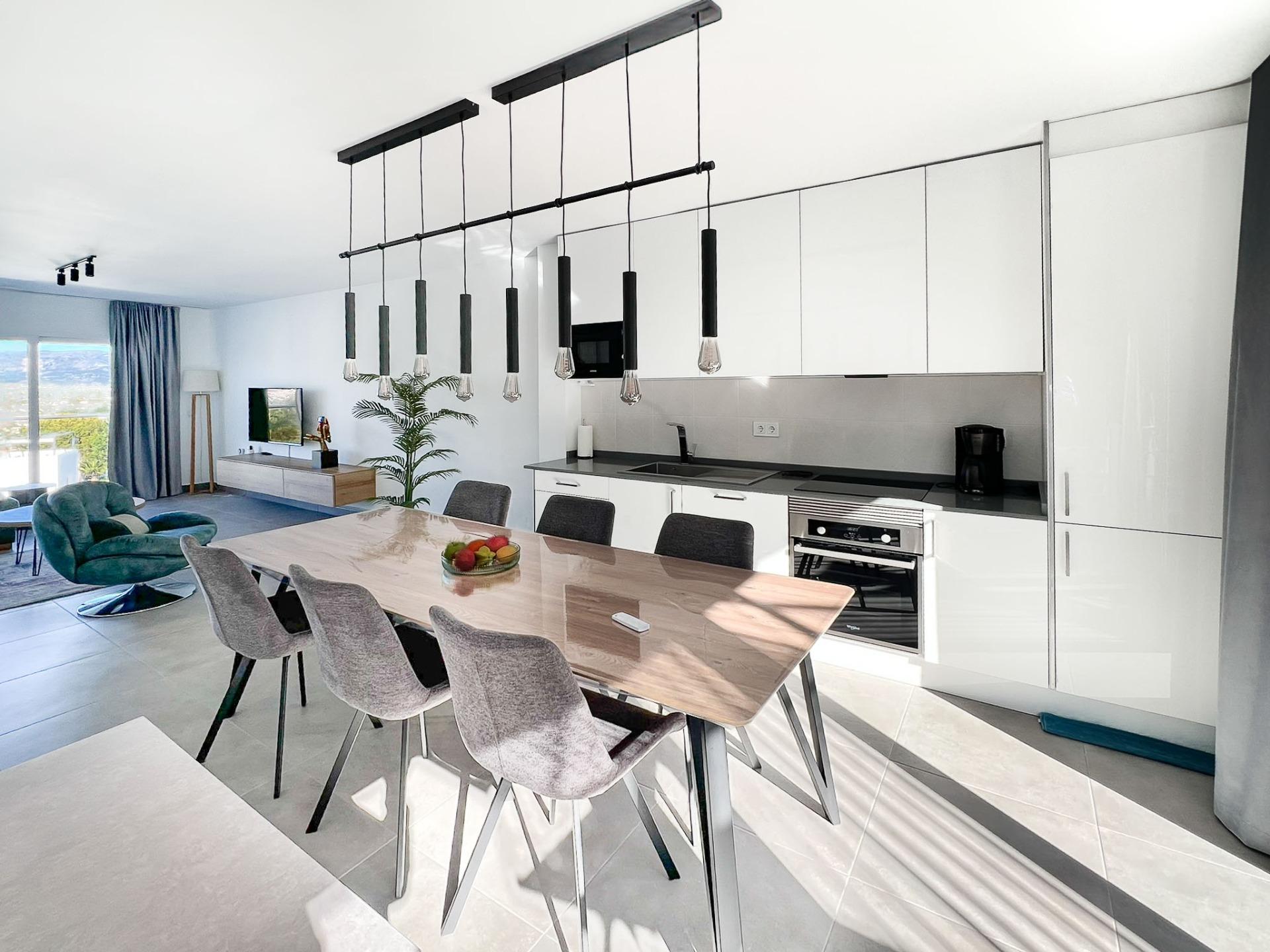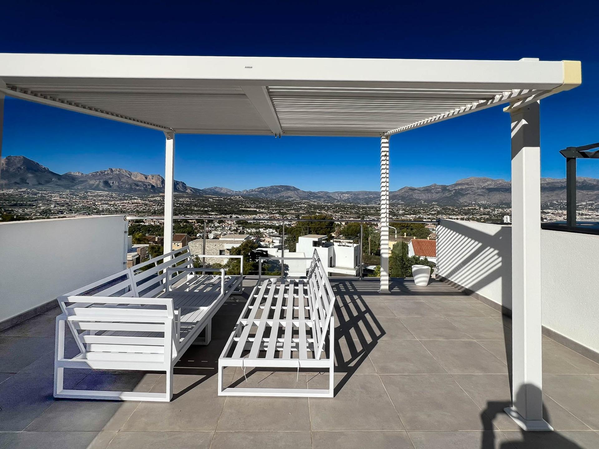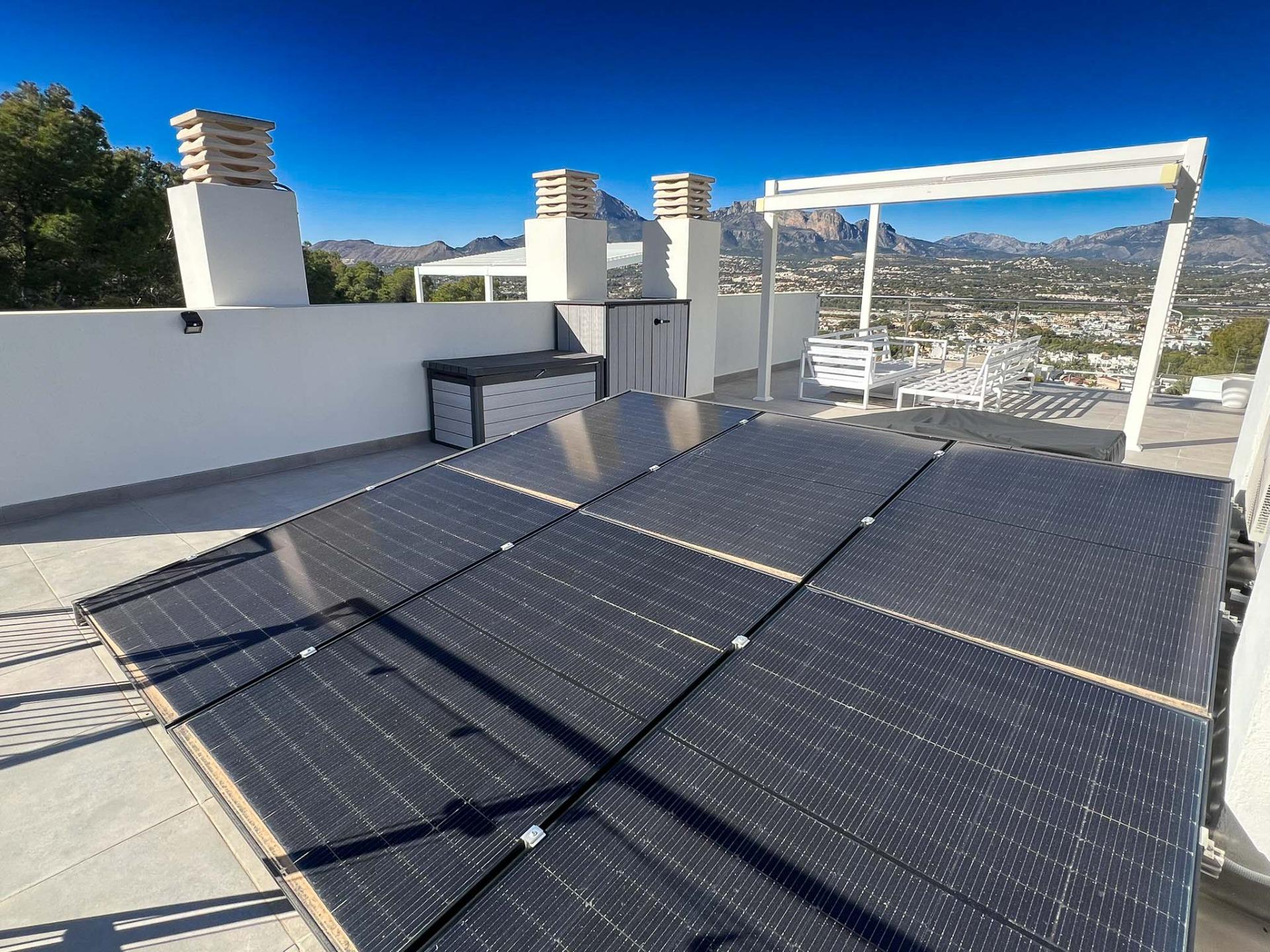 Discover this stunning newly built townhouse, situated in the coveted area of Albir. With an exceptional layout spread over three floors and a spectacular solarium from which you can enjoy views of the mountains as well as the bay of Albir and Altea. On the ground floor, there is a private garage along with a laundry room and bathroom; while the first floor houses two cozy bedrooms, one of which is equipped with its own dressing room and both with en-suite bathrooms. The second floor offers a spacious living-dining room connected to a modern open kitchen, as well as two terraces ideal for enjoying the Mediterranean climate outdoors, along with a guest toilet. The private elevator provides direct access between the different levels, making it easy to move throughout the home. Also equipped with individual split air conditioning and sustainable installations thanks to its solar panels, this townhouse guarantees comfort throughout the year without neglecting your economic or environmental well-being. Complement your summer days by taking advantage of the communal areas, which include a communal pool perfect for relaxing under the warm Spanish sun.
