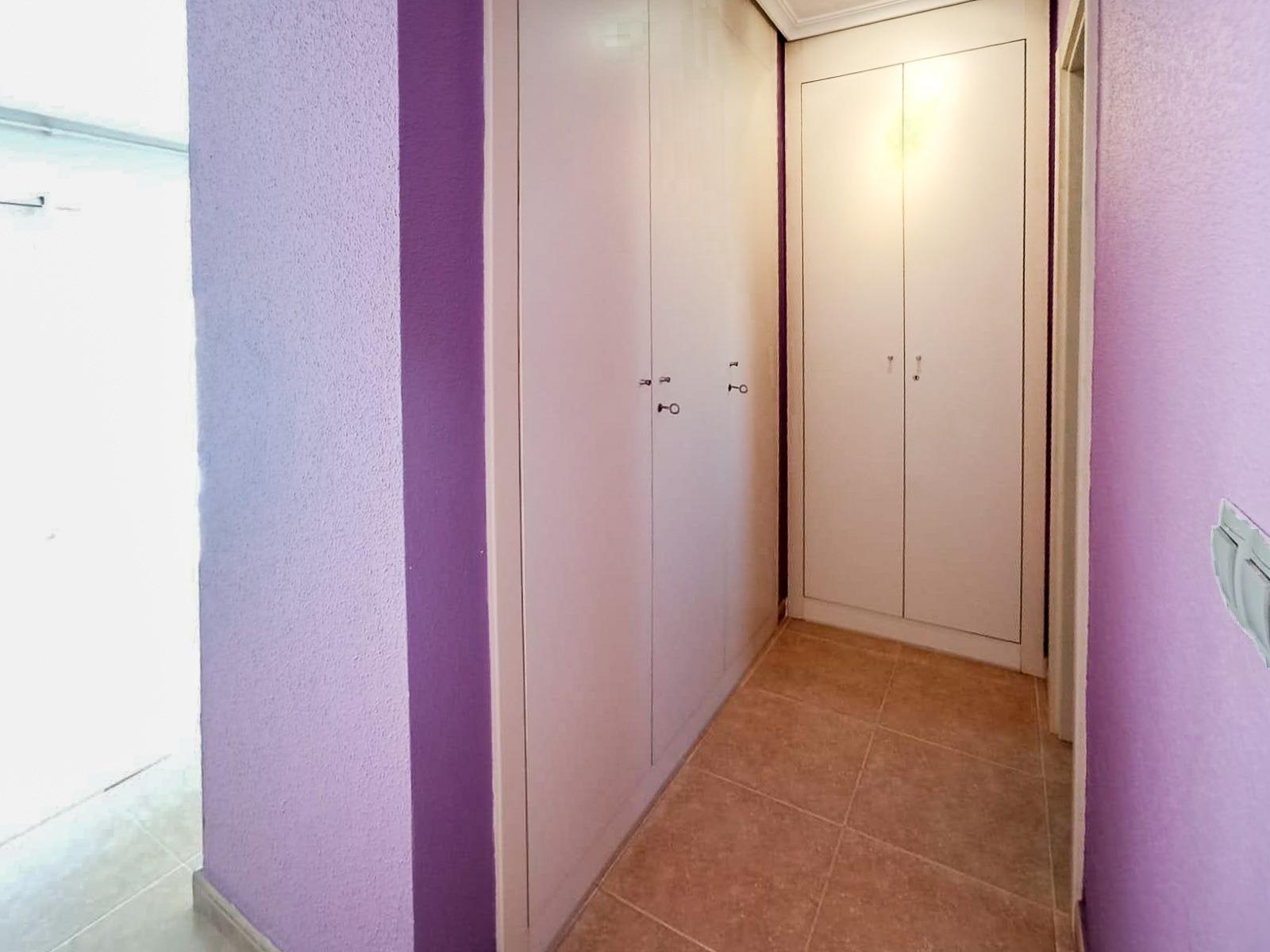 Townhouse with three bedrooms, two bathrooms, a separate kitchen, a spacious living-dining room, a sun terrace, and a garage for three cars with a storage room in a quiet, well-kept residential area with a pool and gardens, 1 km from the center of Alfaz del Pi.~The home has a 30 m2 living-dining room with a fireplace and opens onto the large outdoor terrace and a small garden. The kitchen is spacious, separate, and fully furnished and equipped, and also has a 6 m2 utility room/laundry room. There is also a guest toilet on this floor.~On the first floor are the three bedrooms. The master bedroom has a dressing room, a full ensuite bathroom, and a terrace, providing plenty of natural light. The other two bedrooms have natural light and built-in wardrobes, and on this floor is another full bathroom.~Upstairs, there is a beautiful sun terrace with views of the Puig Campana and Sierra Bernia mountains, ideal for sunbathing or relaxing in the afternoon or evening.~In the basement, we have a garage with capacity for three vehicles, a storage room, and all with direct underground access.~The complex is fully fenced and has a large communal pool and garden areas, as well as a parking lot with complimentary visitor spaces.~It is ideally located just 1 km from the center of Alfaz del Pi, and is close to supermarkets, a pharmacy, bars, and shops.