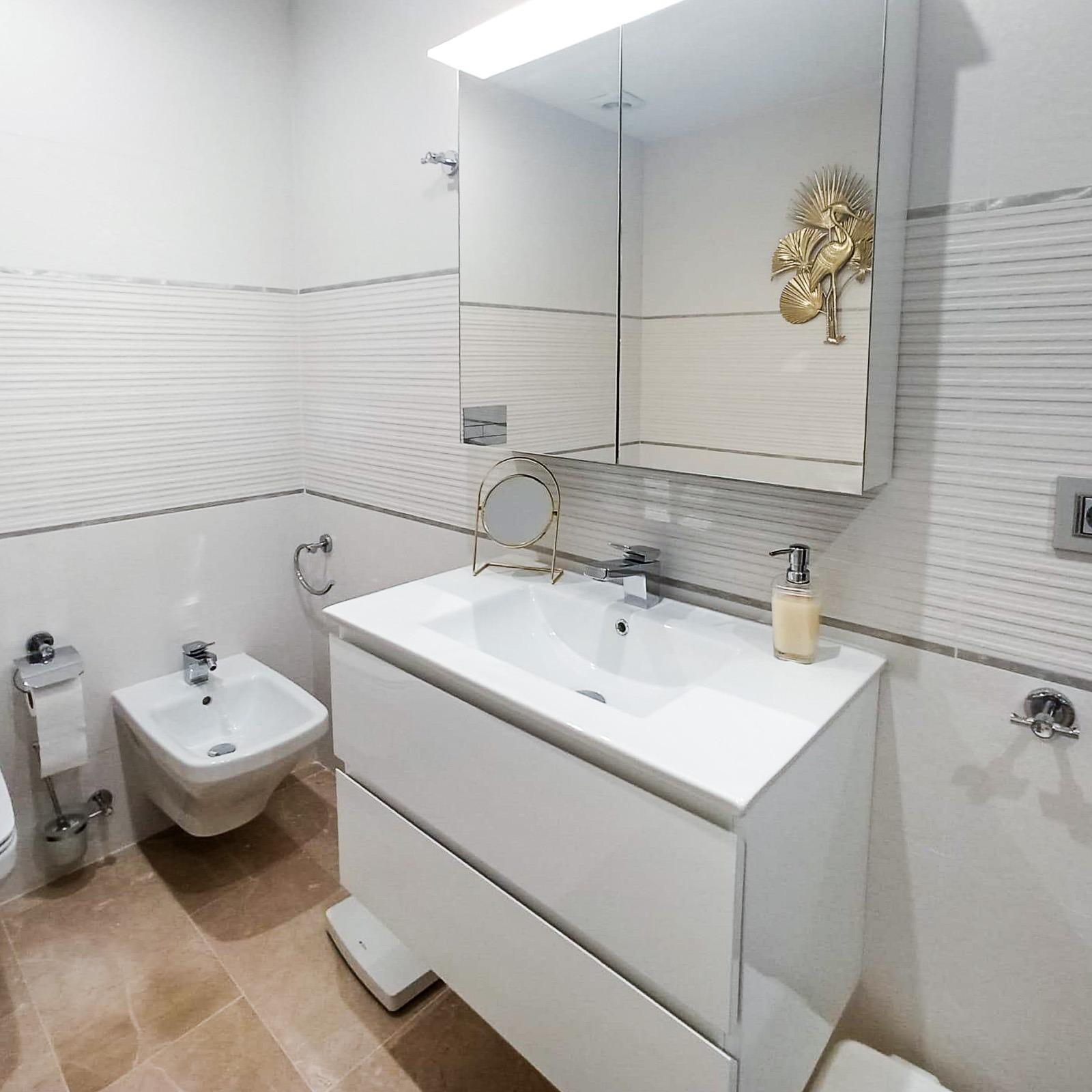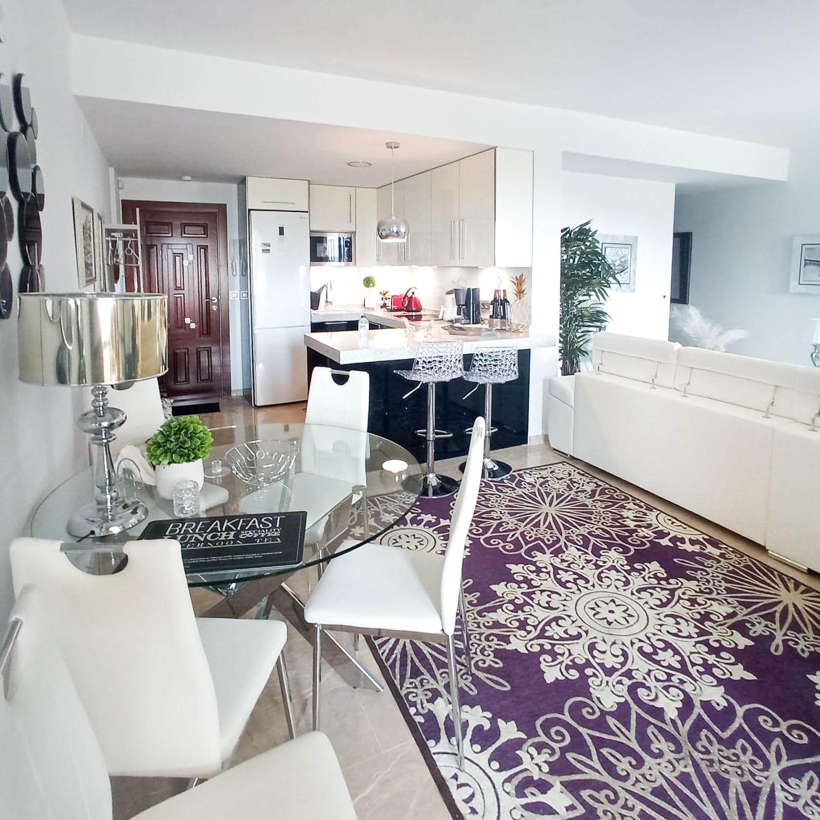 Luxurious renovated one-bedroom apartment with an en-suite bathroom and a separate bathroom, featuring marble floors, air conditioning, underfloor heating, a designer kitchen, a large east-facing terrace, and a storage room. This complex features a swimming pool, parking, gardens, and common areas including a reception area, a gym, and a communal lounge.~This unique apartment is being sold with top-quality furnishings and appliances. It has a spacious living-dining room with plenty of light thanks to its direct access to the terrace. The designer open-plan kitchen is fully equipped and features granite countertops.~The bedroom has a four-poster bed, a built-in wardrobe, and an ensuite bathroom with a shower and separate bathtub, as well as direct access to the terrace, providing plenty of light and views.~There is also another full bathroom with a shower for general use.~The terrace is very spacious, measuring 15 m2, and could be converted into a second bedroom as it is glass-enclosed. The views are towards the bay of Altea-Albir and Sierra Helada. It is located in a unique enclave in a gated community with many amenities: a communal pool, barbecue area, gardens, a large communal room, a library, a gym area, communal parking (one vehicle per property), and a reception area. It is located in a very quiet area 500 meters from supermarkets and other shops and a 10-minute drive from Alfaz del Pi, Benidorm, and La Nucía.~The price of the property includes a small 2.5 m2 storage room.