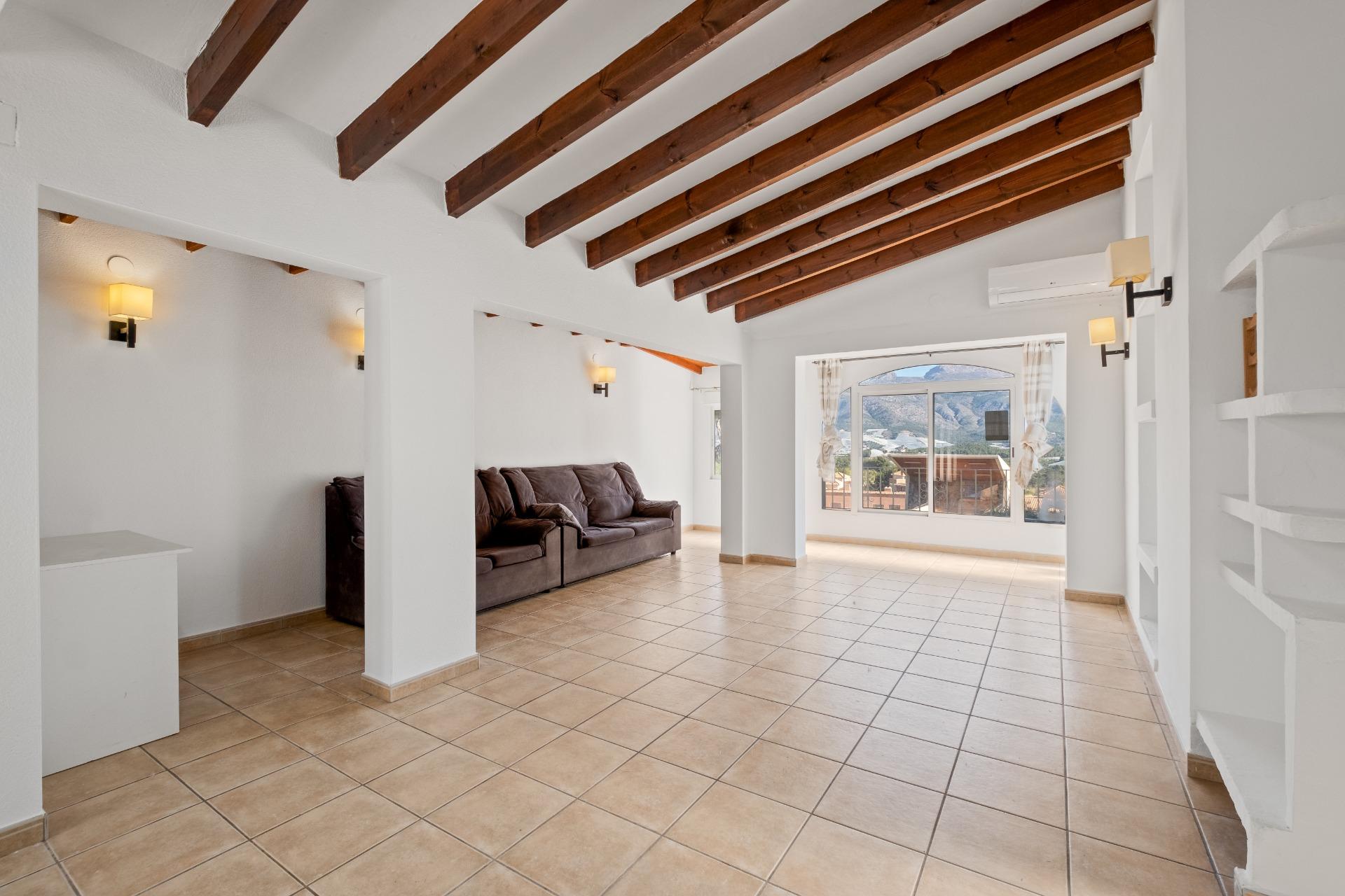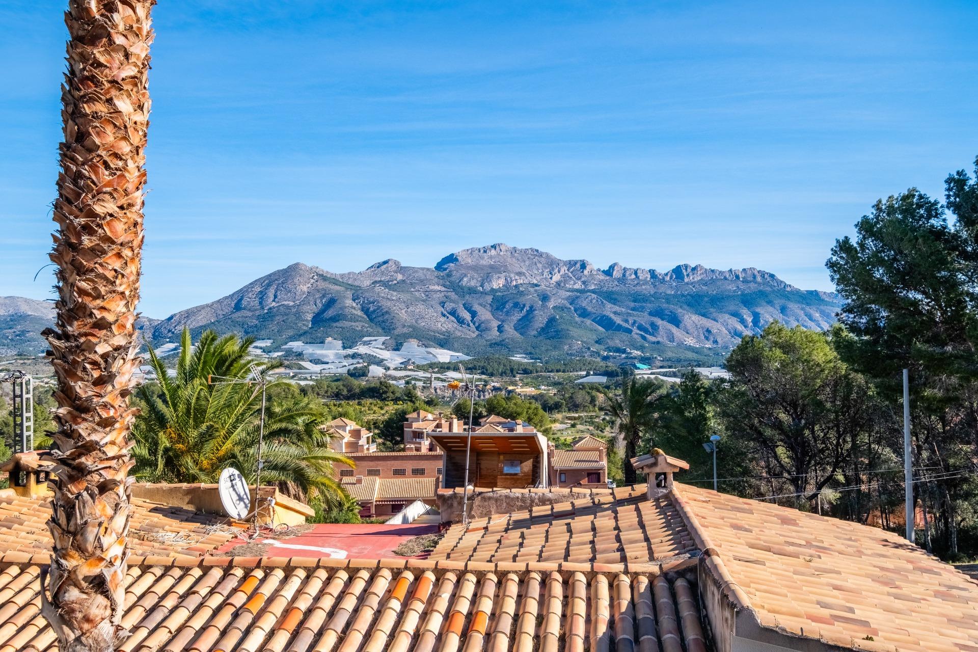 Beautiful two-bedroom, one-bathroom townhouse, with an independent one-bedroom, one-bathroom apartment, as well as parking, a pool, and a 450m2 plot in a quiet urbanization between Alfaz, Altea, and La Nucía.~This home has two floors. On the main floor, we have a spacious living-dining room with views of Sierra Bernia and a fully equipped American kitchen, as well as a pantry. On this same floor, there are two simple bedrooms with fitted wardrobes and natural light, as well as a full bathroom also with natural light.~On the semi-basement floor with independent entrance, we have an apartment that needs finishing work with a small living-dining room with connections for an American kitchen, a bathroom, and a simple room.~The 450m2 plot has a front patio and parking (carport). In the back area, we have several patios, a garden, and the private pool with incredible views of the entire Sierra Bernia and Ponoig area. ~The house has air conditioning and is sold unfurnished. ~It is located in a quiet urbanization with sports facilities, a social center, and nearby dog areas. The center of La Nucía is only five minutes by car, and both Altea and Alfaz are seven minutes away.