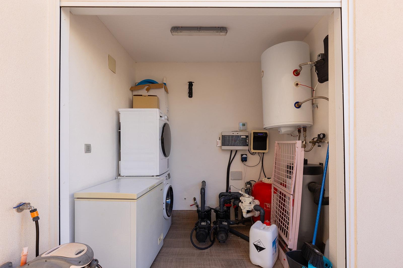 Enjoy the Mediterranean lifestyle outdoors with your private swimming pool, complete with a charming waterfall, and a dedicated sunbathing area. The property also boasts a magnificent rooftop solarium, thoughtfully equipped with pre-installed plumbing and electrical connections – perfect for adding an outdoor kitchen or a bespoke entertainment space with scenic views.